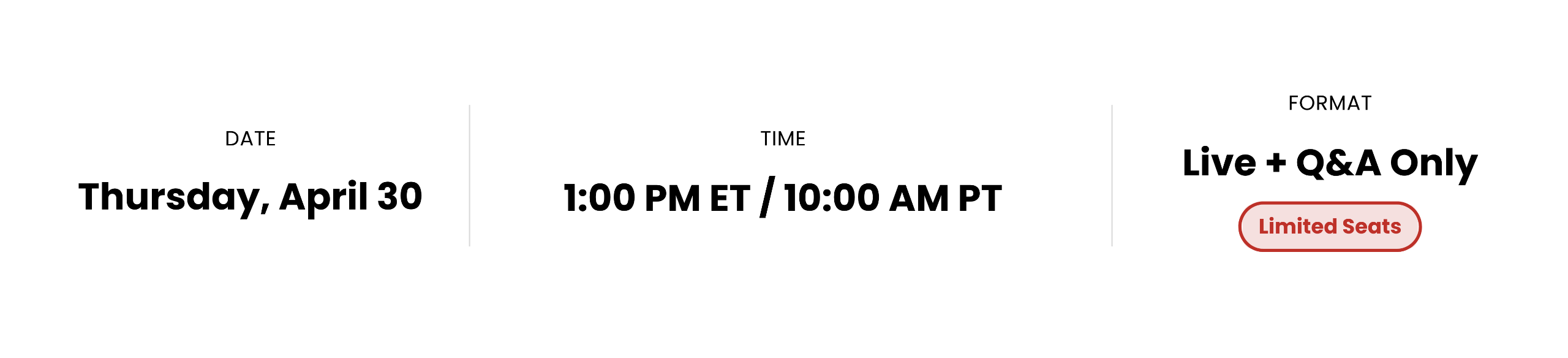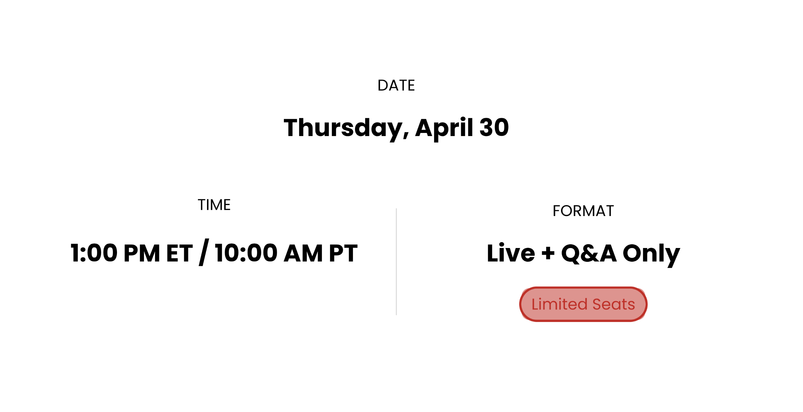 This is a live training with real-time Q&A — get direct answers to your specific questions. Something no pre-recorded course can offer. Spots are limited and this session won't be recorded.